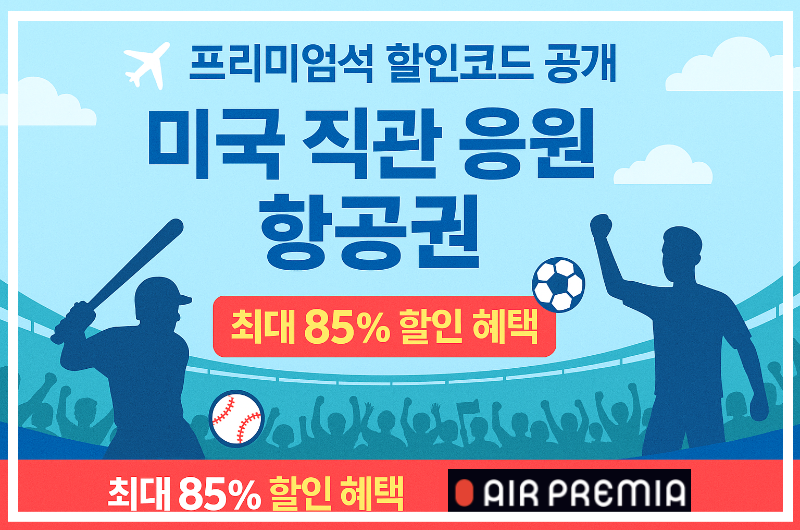 손흥민·이정후 미국 직관 응원 준비! 에어프레미아 항공권 최대 85% 할인과 프리미엄석 전용 할인 혜택까지, 합리적인 가격으로 특별한 여행을 즐겨보세요.